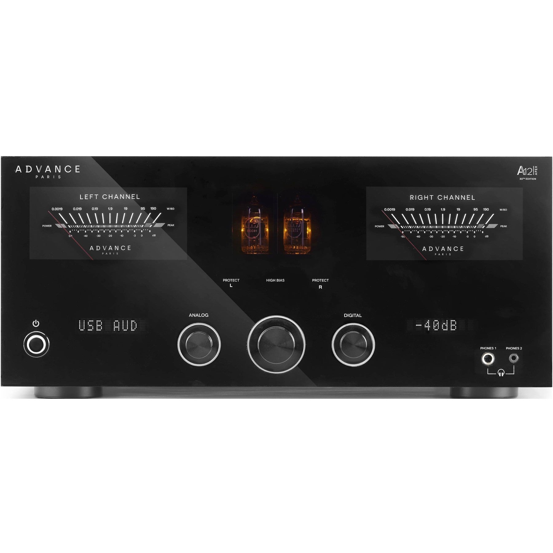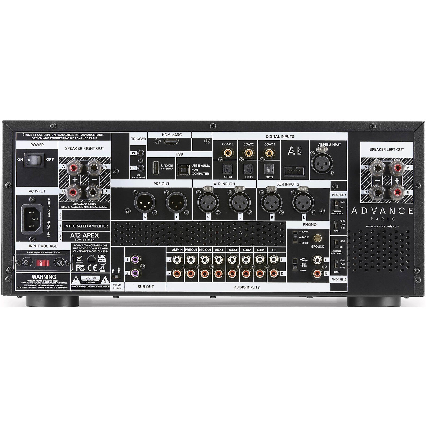 The Advance Paris A12 APEX sits at the top of the APEX integrated range, combining a tube preamp stage with a powerful Class A/B dual-mono output section. Delivering up to 190 watts per channel into 8 Ω and 292 watts into 4 Ω, it has the headroom and current to control demanding loudspeakers while preserving finesse and low-level detail. A next-generation ESS9039 DAC, MM/MC phono stage, and HDMI eARC turn the A12 APEX into a one-box hub for vinyl, high-res digital, and TV audio in serious two-channel systems.